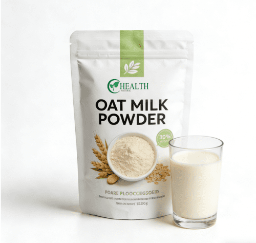 Product Name: Premium Oat Milk Powder (Organic/Regular available) Ingredients: 100% Whole Oat Grain (Enzymatically Hydrolyzed) Beta-Glucan: ≥3% (Soluble Dietary Fiber) Protein: 8–10% Fat: 4–6% (Low Fat) Moisture: ≤5% Particle Size: 80–150 mesh Solubility: Instant (Cold/Warm Water) Certifications: Organic, Non-GMO, ISO, HACCP, Halal (Optional) Shelf Life: 24 Months (Unopened) Storage: Cool, Dry Place, Avoid Direct Sunlight Packaging: 25kg/Fiber Drum; 500g/1kg Bag (Customizable) -
